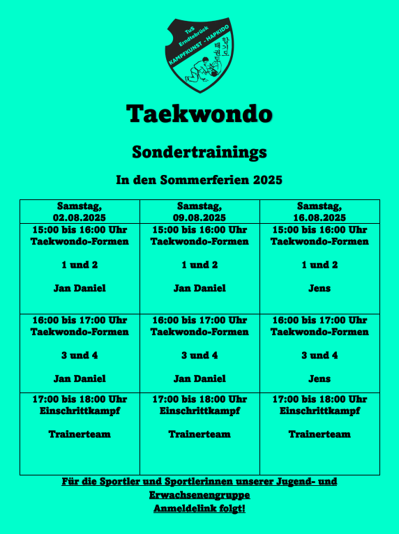Taekwondo-Sondertrainings in den Sommerferien 2025