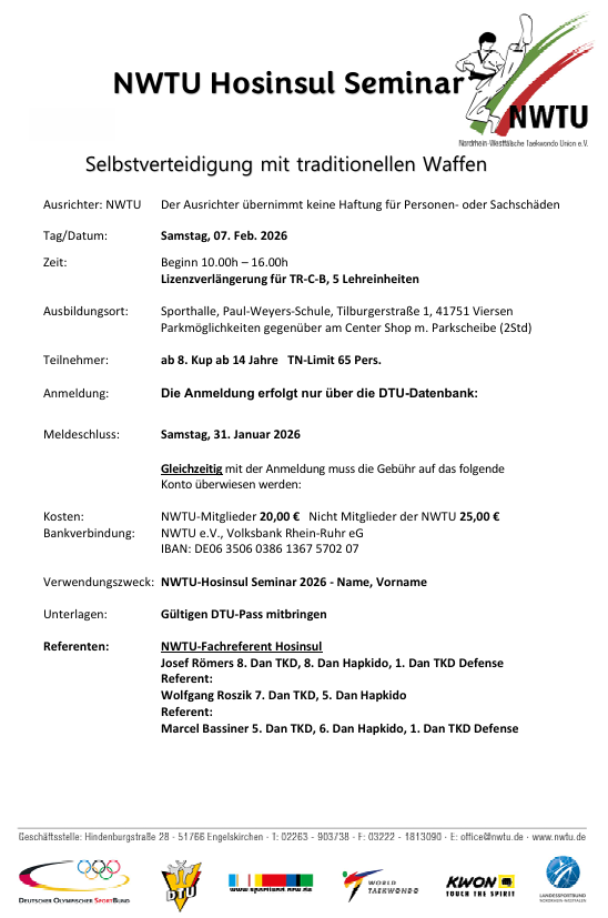Taekwondo-Hosinsul-Seminar der NWTU