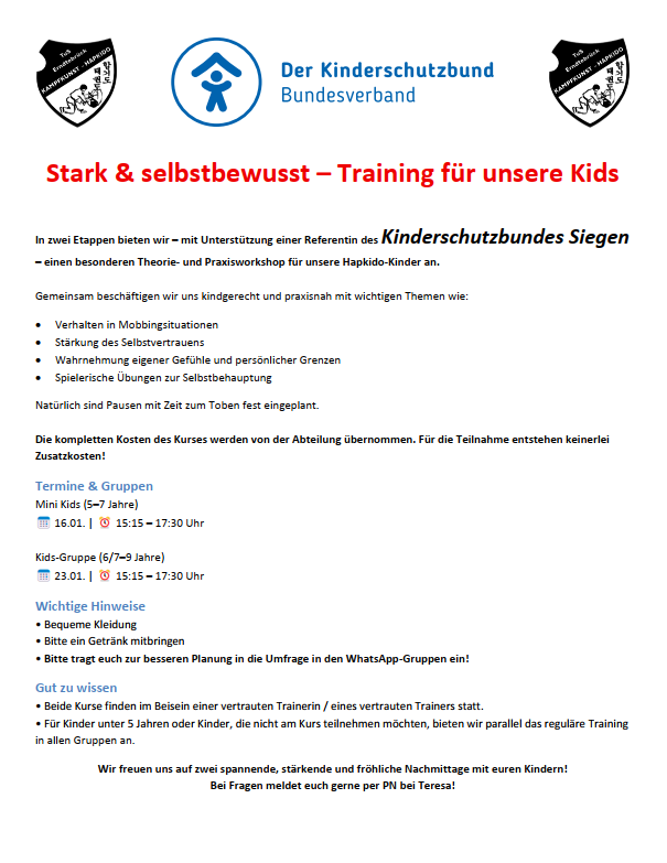 Anmeldung in den Whats-App-Gruppen- bitte die Trainer ansprechen!
